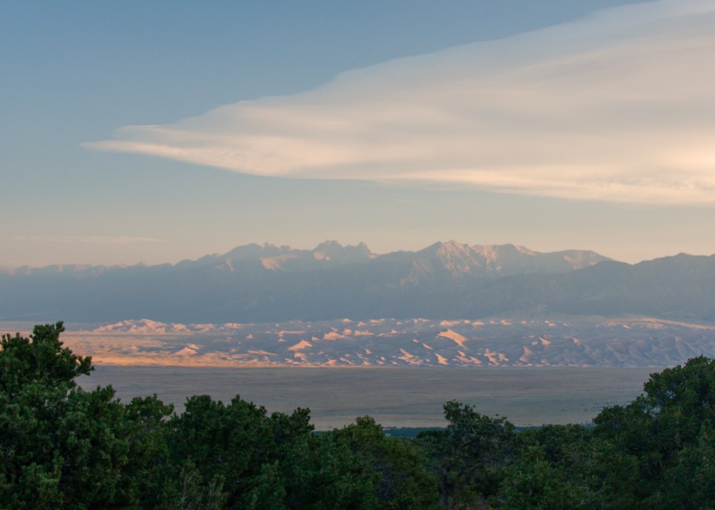 After a long day of driving across the 102 degree plains of Kansas and Eastern Colorado, the temperature started to drop as I gained elevation skirting the Spanish Peaks and Sangre de Cristo range. I stayed the night in the town of Alamosa and the next morning, rose with the sun for a hike at Zappata Falls and a visit to the Great Sand Dunes.