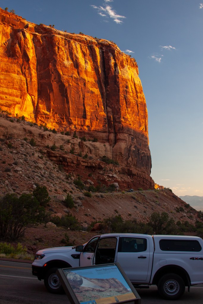 On this trip, after adding a visit at Great Sand Dunes, I decided to see the National Monument I had missed. It looked interesting in the documentary, but I wasn’t all that excited about it. I stayed overnight in Grand Junction. If I was going to look at a dry pile of rocks, I should at least see it in the best light, sunrise.