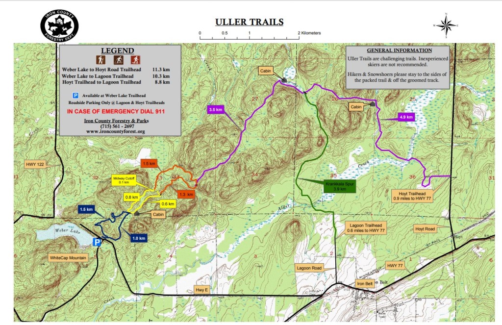 On Friday, we discussed places to ski for the day. Mark wanted to do the Uller trail. However, this is a long more technical route, probably not groomed and winds through the more remote Penokee Hills. It is not a loop, requiring two vehicles, one spotted at the end. Thus, once you pass the halfway point, you are committed to the trailhead at the end, tired or not. While I was more inclined to ski the groomed ABR trails, Mark brought up a good point, “at our age, you don’t know when you might ever ski it again”. The last time I was on the trail was 1989. I was a little more spry back then, so knew this could be tough.