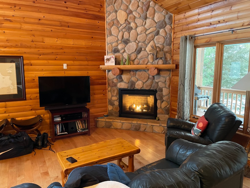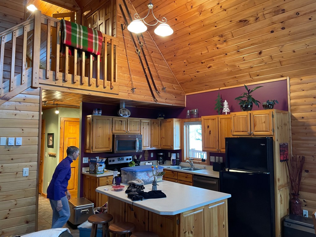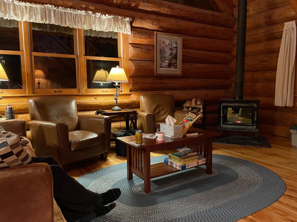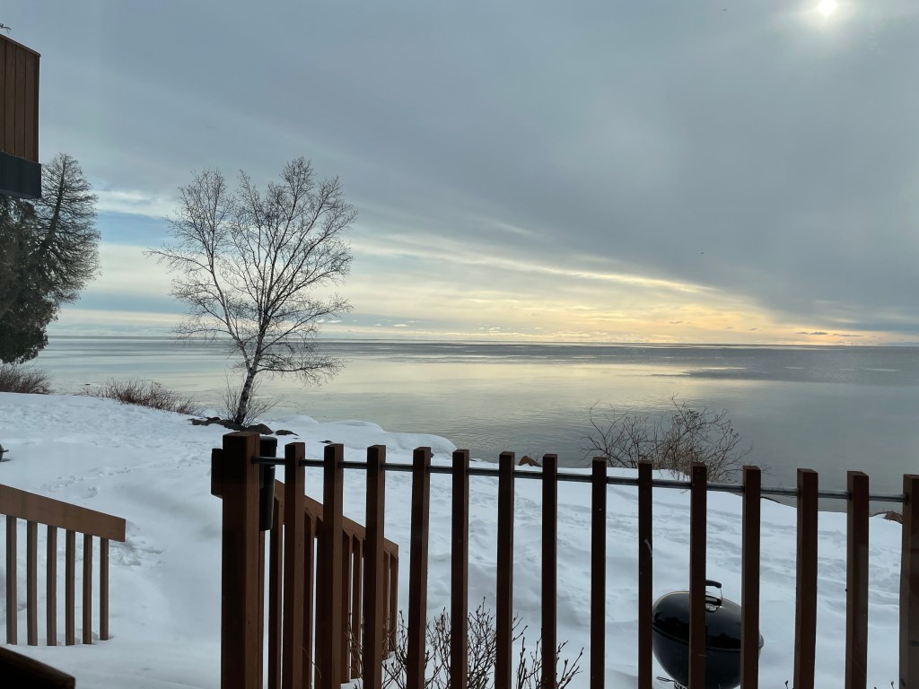 Late in the afternoon, we drove north to our first cabin near the Lutsen Ski area. The cabin was 2 stories tall with a loft right on the shore of the lake. A breeze from the south pushed ice against the shoreline, but the lake surface was calm and flat.