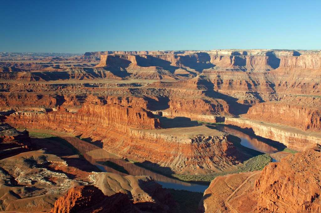 In the 1800s, cowboys would herd mustangs past the narrows and onto the flat point. Then, barricading off the neck, the horses were trapped until taken back to their ranch. The story is told, that on one occasion, they choose to take only the better mustangs, leaving the rest on the point. Without thinking, they left the barricade up. For whatever reason, they did not return, and the horses died of thirst. Thus, we have today’s name of the park, Dead Horse Point.