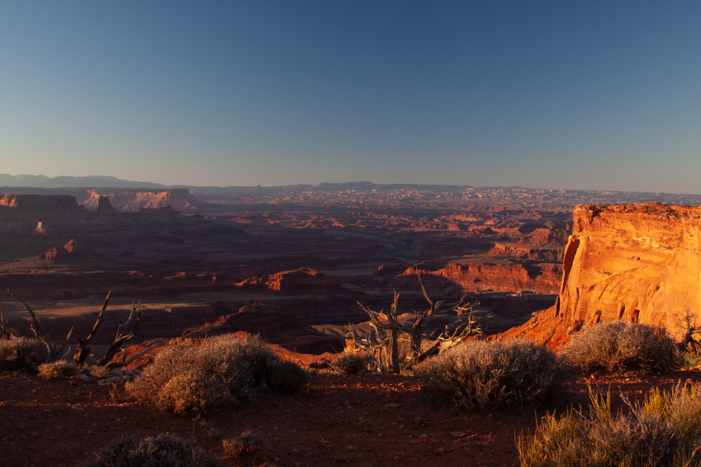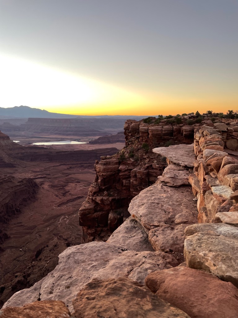 The Utah State Park, Dead Horse Point, lies between Arches and Canyonlands National Parks, atop a mesa overlooking the Colorado River. It is a less visited park, so I decided to hike on a Saturday. I still arrived there at 6 a.m. so as to avoid any vehicles that might line up at the entrance. At an hour before sunrise, there were none.