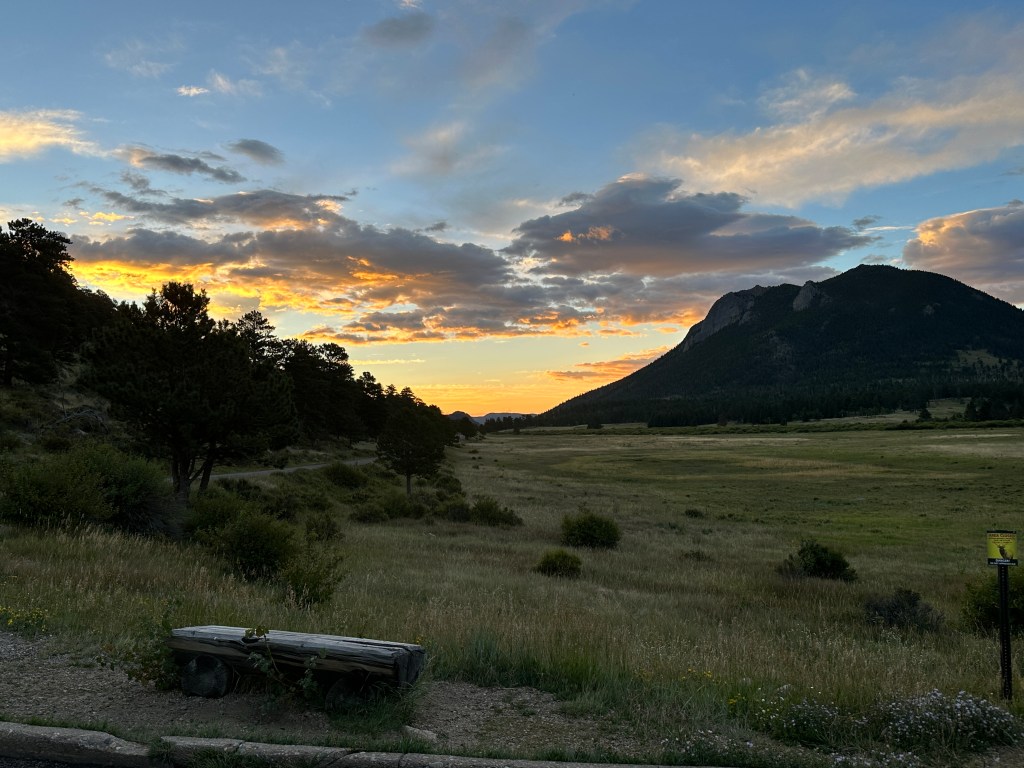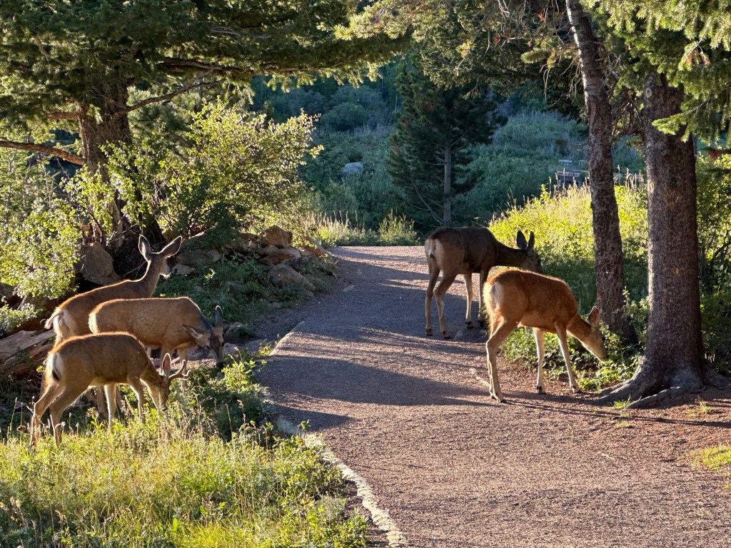 If you are going to vacation at Rocky Mountain National Park, be aware of 2 things. Get your Timed Entry Tickets, preferably for an early window (sunrises are fantastic, wildlife is more common, people are less common). And, get up before sunrise and go to bed shortly after sunset. On my current trip, I was up as early as 3 a.m. and in bed by 8 to 8:30 p.m. Near sunrise, I have seen elk, moose, coyotes, fox, and Mule Deer. Within an hour or 2 of sunrise, I have also seen 50 to 100 cars lined up at the entry station. Go early!