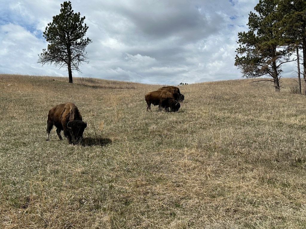 It seems that each new place I visit starts out with good weather for a day or two. Then it goes downhill. Wind Cave was no different. My first day was sunny and 60. The next 12 were a mixture of high wind, freezing nightly temperatures, rain, snow, and hail. I was only able to hike 2 of the days. On those I had to stay alert, as bison where everywhere and there were notices at the trailheads for mountain lions in the area.