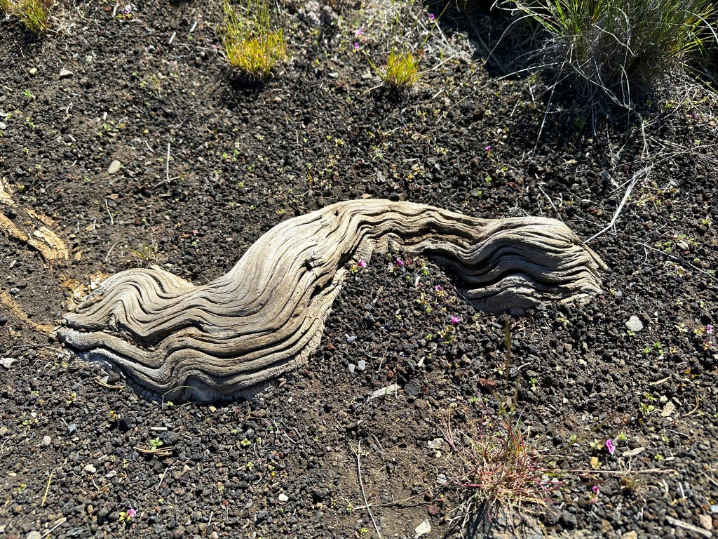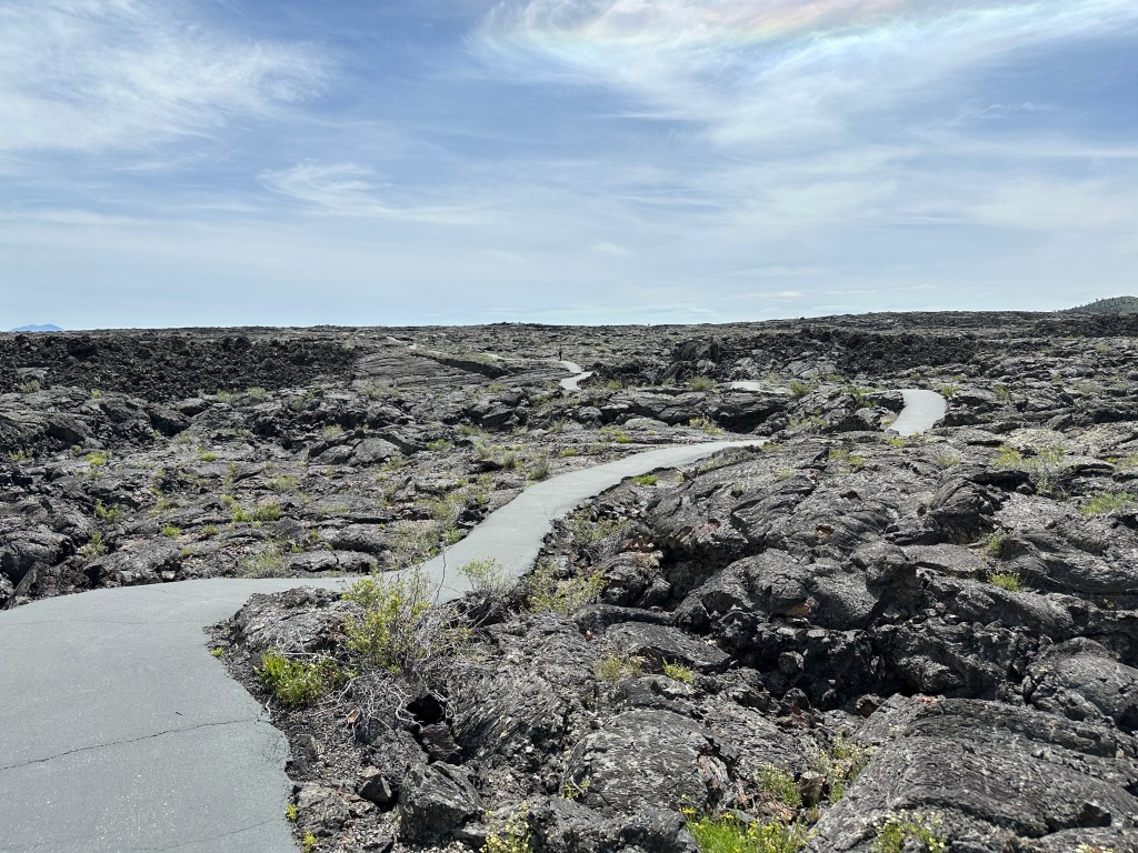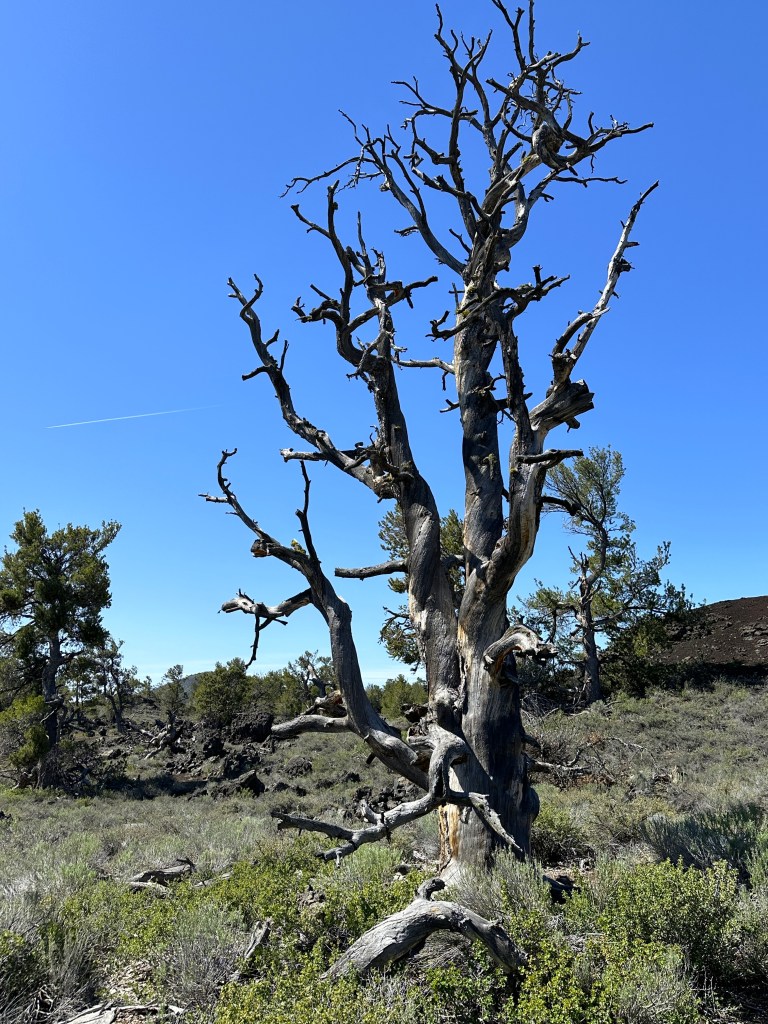 I hiked several of the few trails through the area. One climbs up onto a series of cinder cones. Another makes a loop through what is aptly called The Devil’s Orchard. All the trails are made through cinders. Walking on them instantly brought back memories of spring school days back in the 1970s. Those were the days before the extruded rubber like asphalt used for running tracks in school stadiums appeared. Running tracks were made of cinders back then. They were great for traction, but you definitely did not want to fall down as they scraped off your skin like sandpaper.