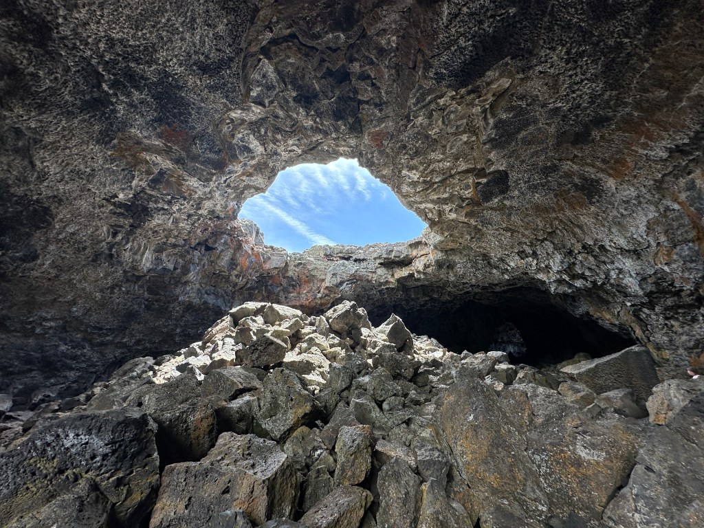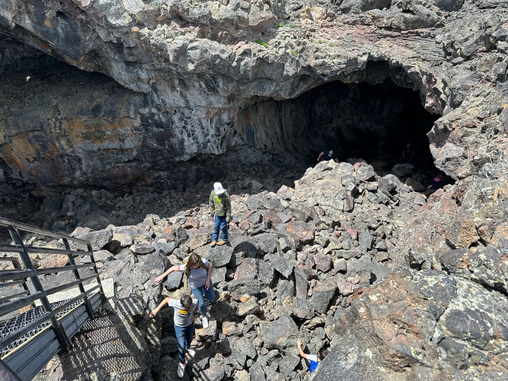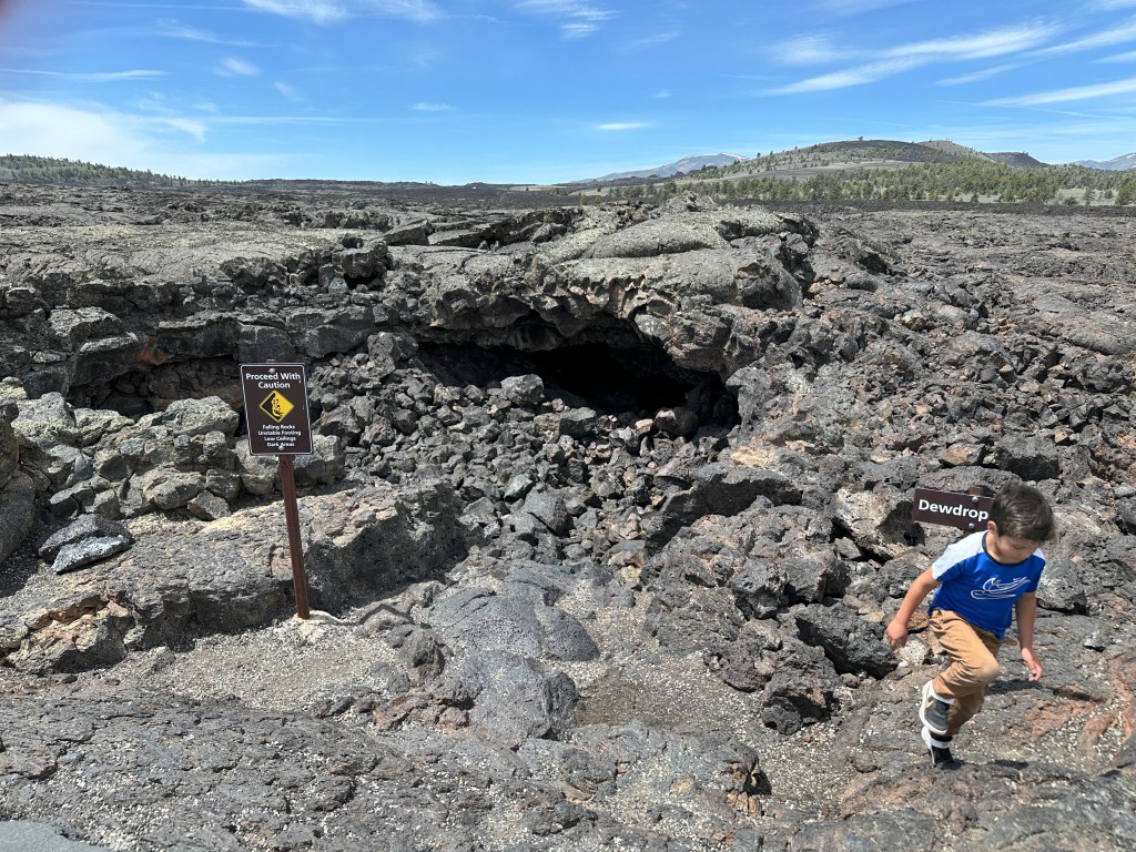 On my walks, I did not see much wildlife. There were a few ground squirrels in the campground and small warblers in the sage and sparse junipers. The lava flows that cover much of the park do not seem to be a good habitat for larger mammals. This impression is belied by the cinder trails. They are covered in as many deer tracks as those of humans. There is also a good population of bats. Flowing lava left many tubes underground that now form caves hosting them.