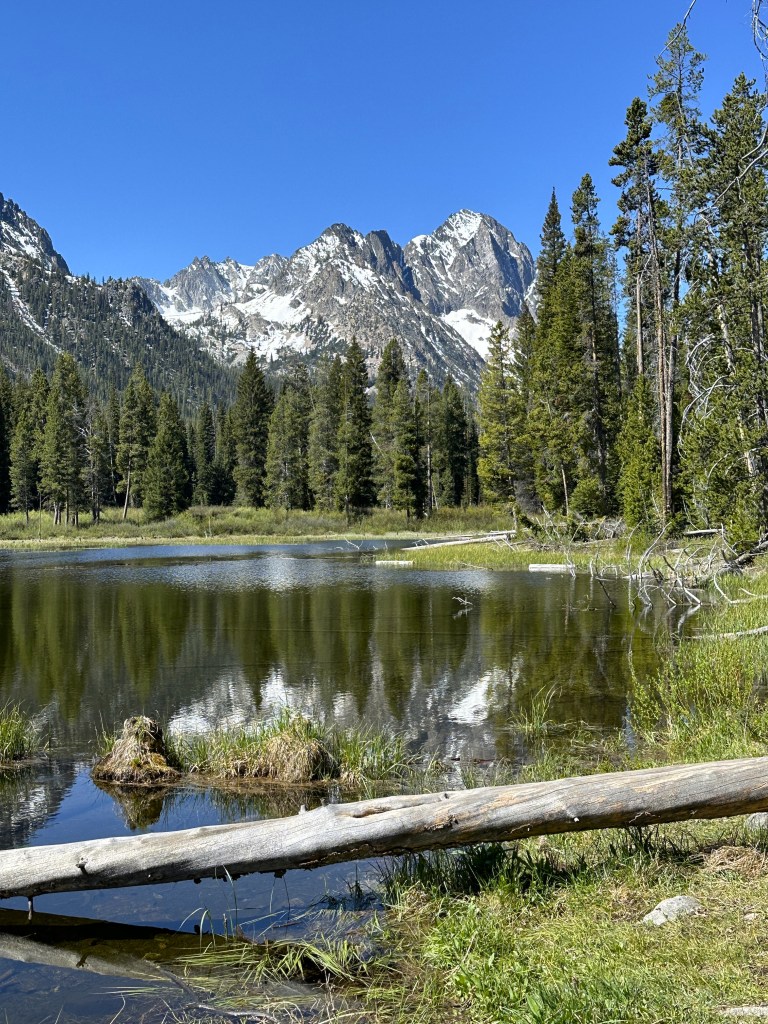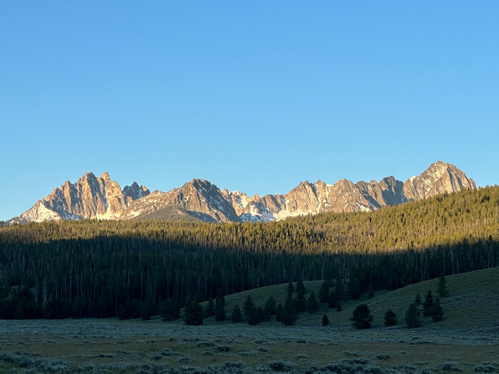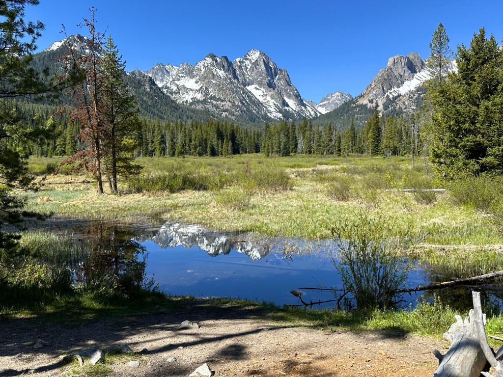 The following day, I drove over to the popular Redfish Lake and hiked for 5 miles along Fishhook Creek. It was sunny and very calm. There were only a handful of other hikers, most of which were met as I was returning to the trailhead. The views of the Sawtooth’s at the end of the trail were amazing. It is still early in the hiking season for trails in the high country, so my fitness level left me pretty tired by the end.