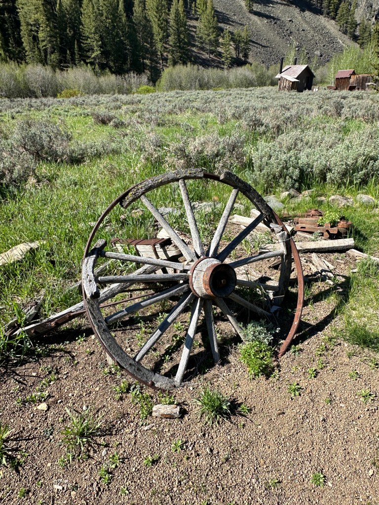 I next visited a ghost town. Gold was mined on the Yankee Fork River northeast of Stanley in a town named Custer. This occurred in the late 1800s. There are a dozen or so buildings still standing out of over 100. Those left are now part of a historical site. The construction was interesting and include roofs shingled with flattened tin cans. While walking through the buildings, I noticed a side trail that went up the hill behind a home. There I found a small fenced in plot with three grave markers. A winter snow slide came down the hill during the night and carried the home of a family of 5 across the main street and over the river to the other slope. They were able to dig out the mother and father, who lived. But, the three daughters were killed. Their graves are there with wooden markers carved with their names and ages of 4, 6, and 10.