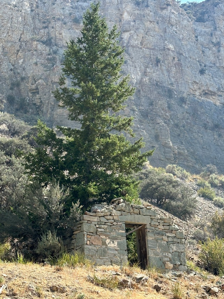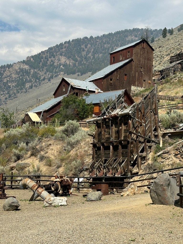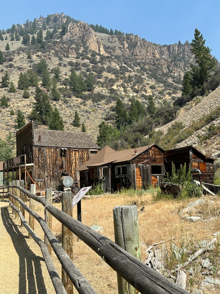 Before checking out the market, I went on a short drive and hike to the Bayhorse Mine off of Highway 75, between Challis and Stanley. There is a very nice Visitor Center and Museum with displays from the mining era (late 1800s and early 1900s) on the way. A short walk to a Bison Jump can also be accessed there. The jump is a cliff where native Americans would force small herds of Bison to the meadows above the cliff, and then run them over the brink. Below the meat and skins would be harvested.