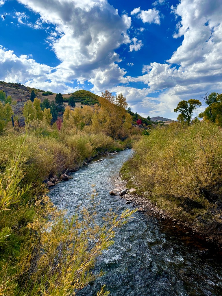 The campground is very nice. The sites are paved. There are picnic tables, fire rings, and griddles, none of which I ever use. The paved and level site is quite nice, however. The site was relatively private with a surround of just over head high shrubs and small trees, all of which are bright fall colors. The small, shallow river flowed through the campground, adding the sound of small riffles. The cost for me, was $14.50 per night. I was out of the Idaho zone of cheap $5-10 campgrounds.