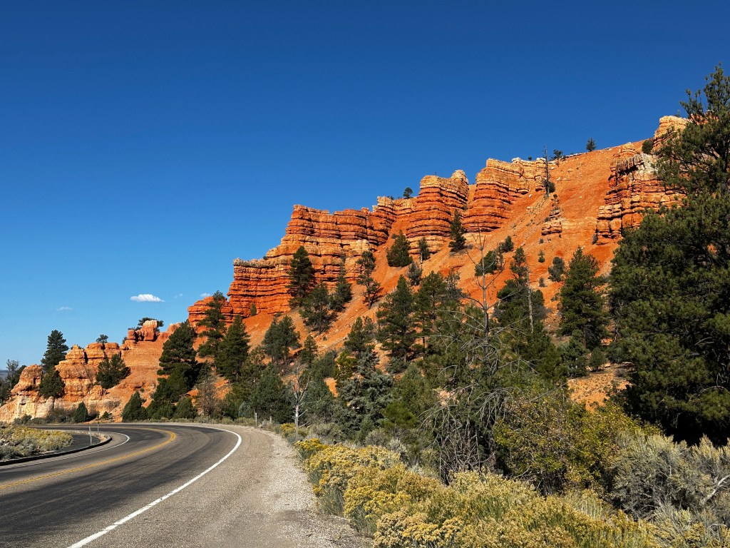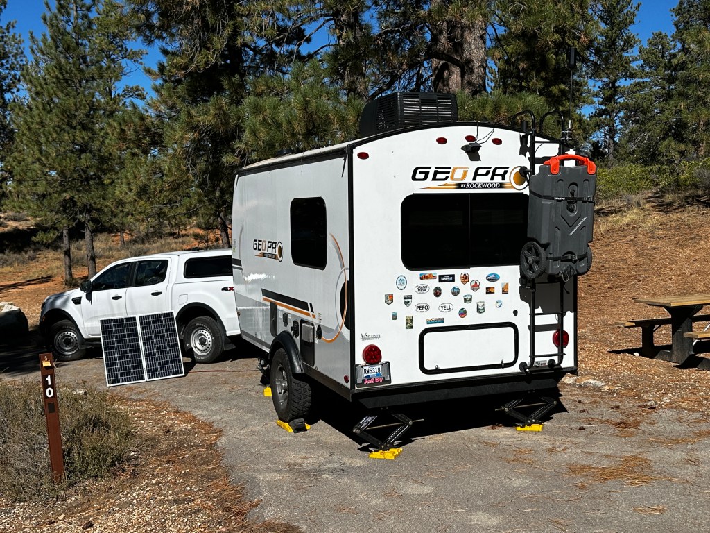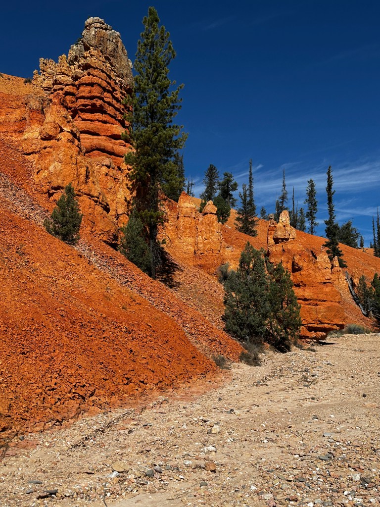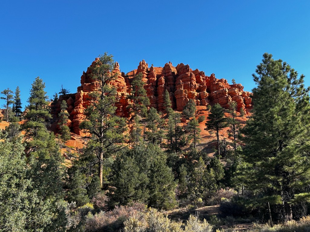 The North Campground is a very nice paved area with flush toilets and showers. With my pass, the cost would be $15 per night. The sites are partially shaded, and being close to 8,000 feet in elevation, stay cool during the day, but not yet below freezing at night. Also, you are located close to the Rim Trail of the canyon and a short hike to the General Store, Visitor Center, and Lodge. There were only 5 sites that were vacant. I picked one that was a “pull through” and had some sun exposure for the solar panels. I checked the weather. The temperatures were still reported to be above 100 to the south. So, I signed up for 14 days at site #10. That is a little longer than most places I have camped this year. There are lots of trails, including Red Canyon back a few miles on the way in. I could run the few miles down to the town of Tropic for groceries and mail.