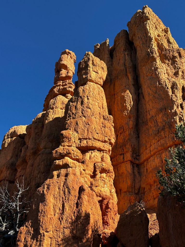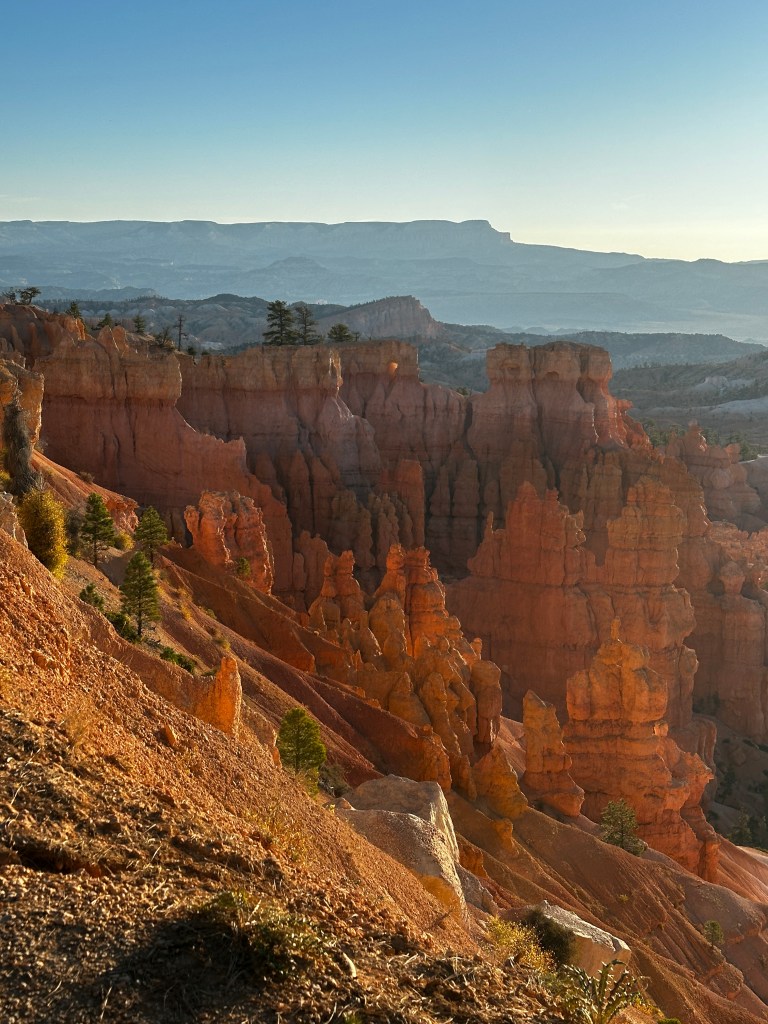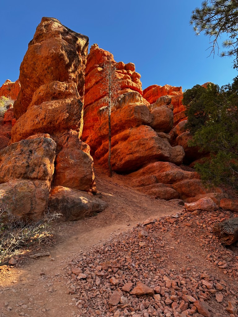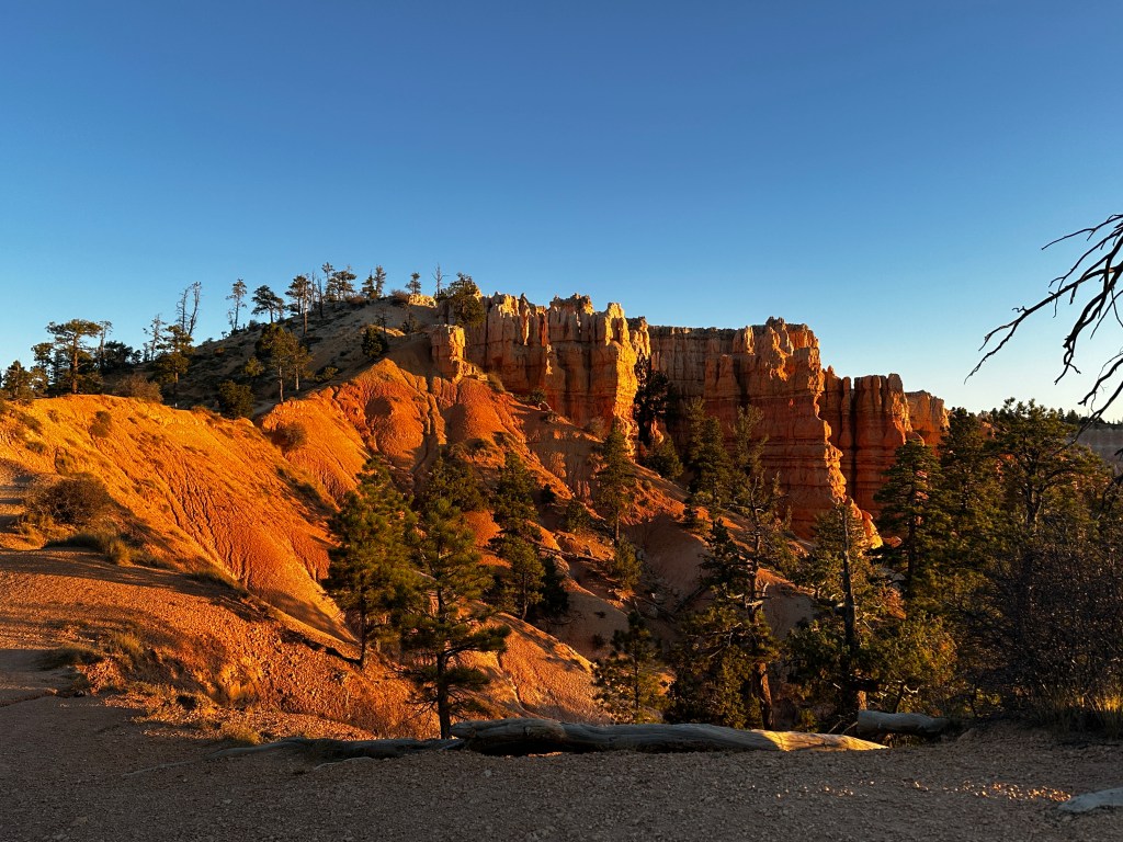I set up and relaxed on my arrival day. The next morning, I backtracked to Red Canyon and hiked the Pink Ledges Trail just after sunrise. The colors of the canyon walls and surrounding fins and spires were amazing blends of red and pink, contrasting with Ponderosa Pines. After completing the hike, I drove back to Panguitch for groceries.