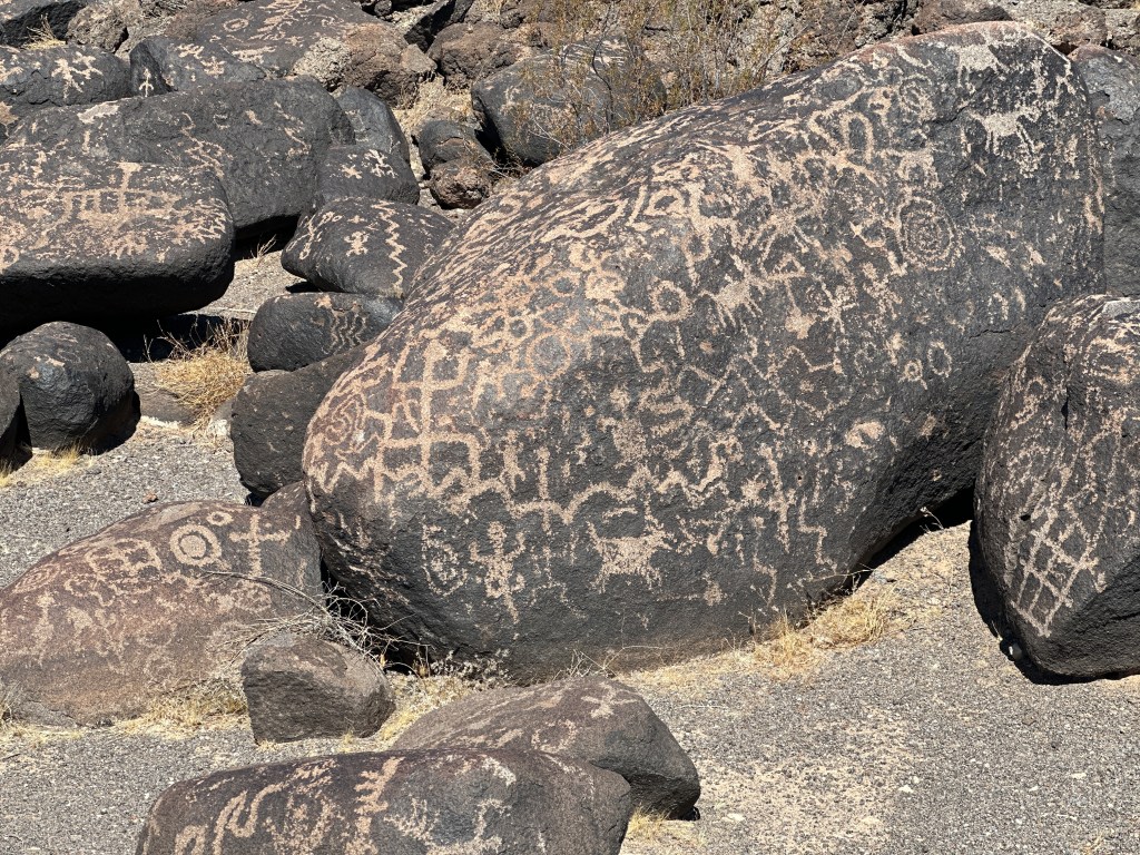 Here at this place, native Americans stopped. They were hunters and gatherers. Their life in this desert was harsh. But they did have time. Time to rest and time to scratch and scrape images into the rock. Images of nature, their lives, and their dreams. In the evenings, they sat around a campfire with their friends and loved ones. There was no Facebook and no Instagram or X. They sat and told stories about their day, smiled and laughed. And they were happy.