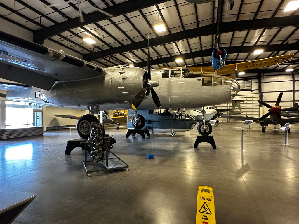 There was a hanger dedicated to the B-17 Flying Fortress, which was perhaps my most favorite airplane. In another, was a B-24 and a P-51 Mustang, which were other favorites. Outside, I walked a line of Navy fighters and Air Force bombers, Including 3 B-52 bombers which were huge. Some helicopters were on display as well as commercial airliners. The number of aircraft on display was amazing. My most favorite, was a B-25 bomber. This is a plane one of my uncles flew in during World War II.