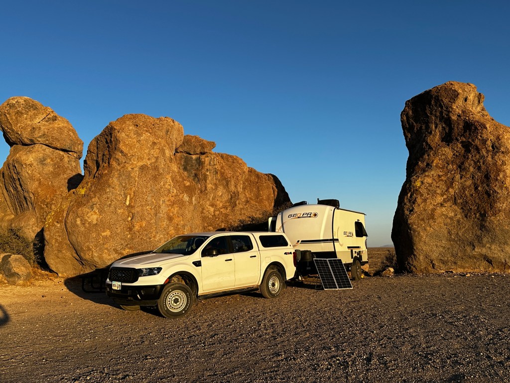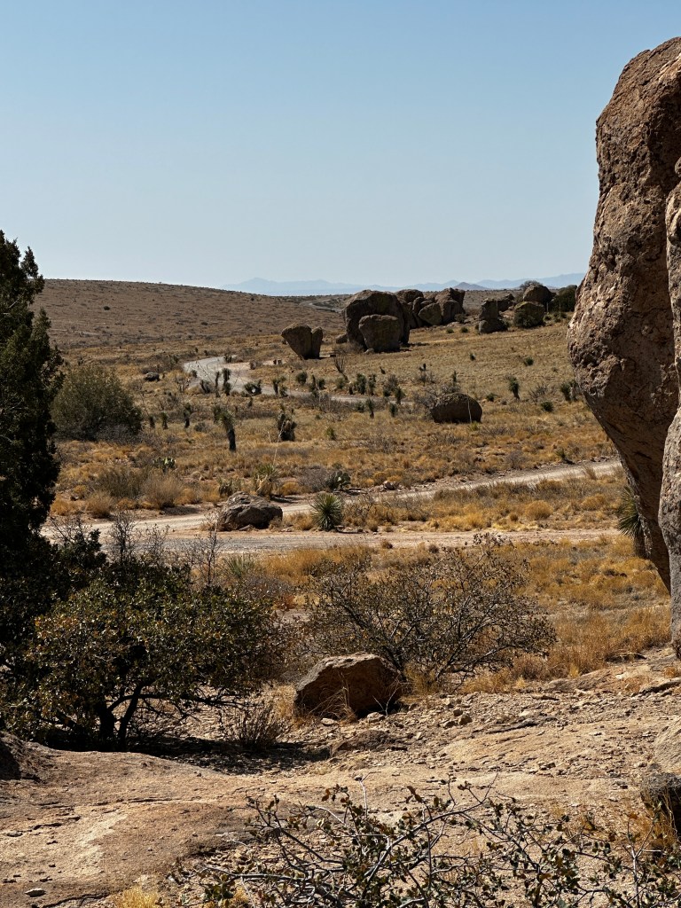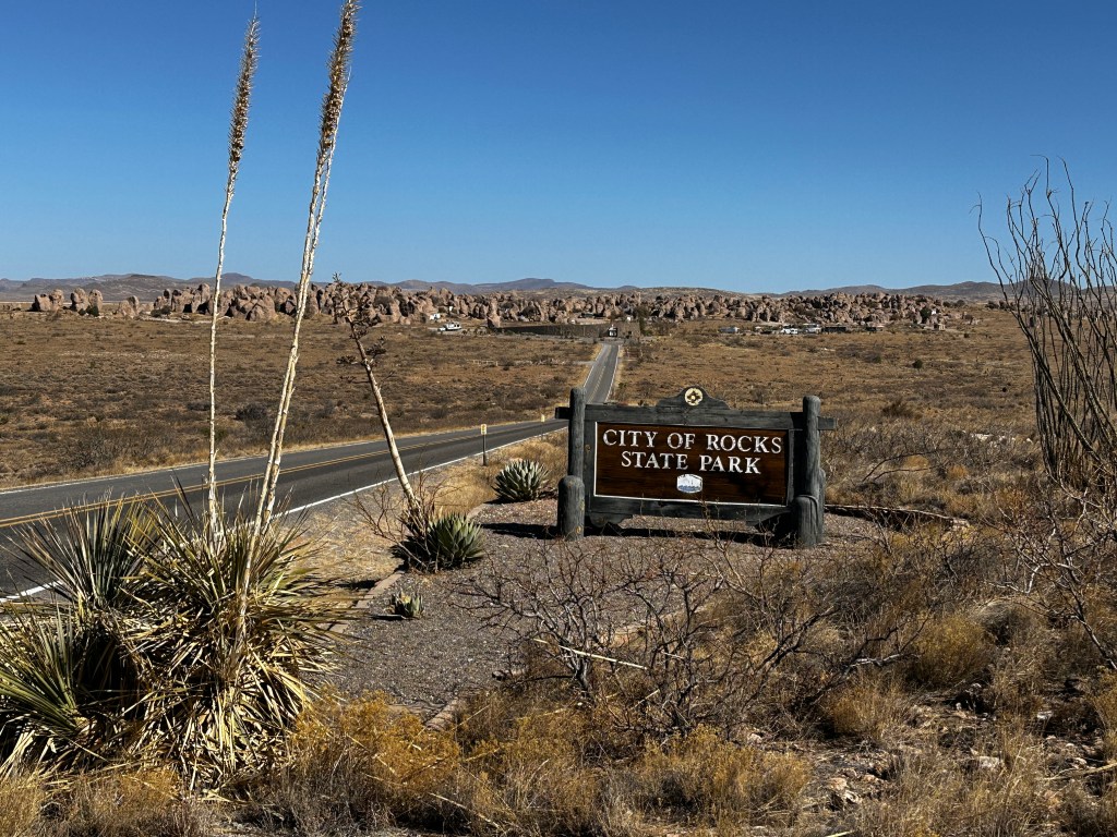 After a few errands in the town of Deming, I arrived at site 18 in City or Rocks State Park, New Mexico. My site was surrounded by gigantic rocks that thrust out of the surrounding desert. The rocks were formed about 35 million years ago when a large volcano erupted. There is a visitor center and desert garden near the front of the park. This is a popular park and thus, you would probably want to make reservations ahead of time in order to get a campsite.