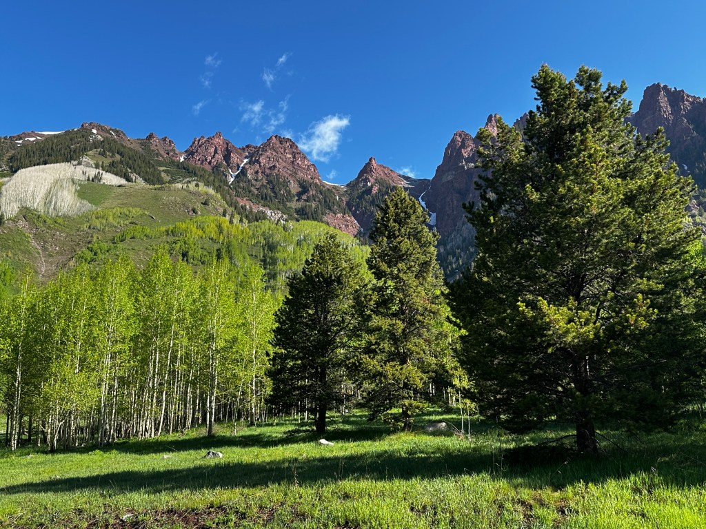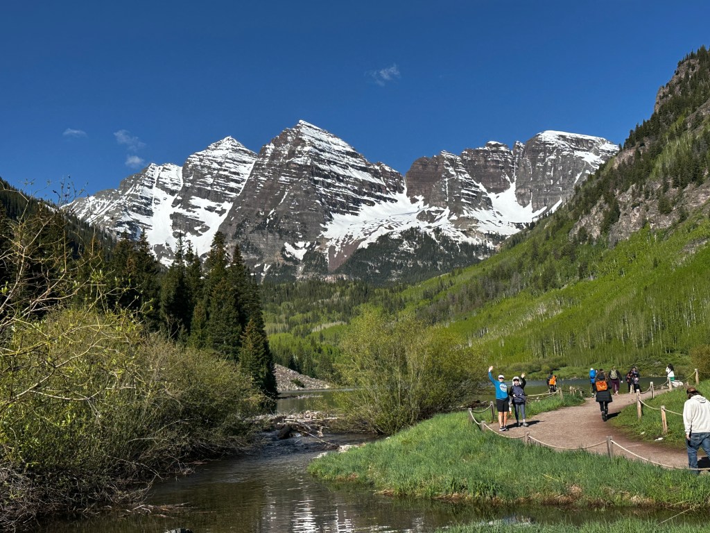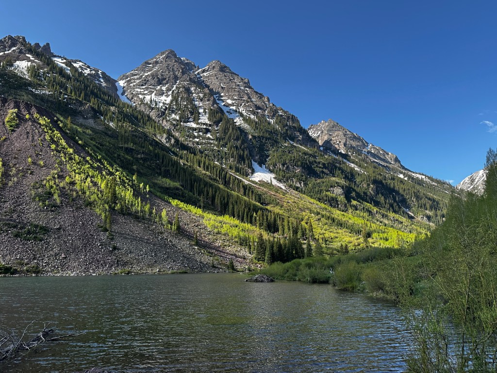 Late May and early June is a good time to make the trip to the Maroon Bells. Crowds are lighter than later in the year and there is still a lot of snow on the mountains, making for some excellent photography opportunities.